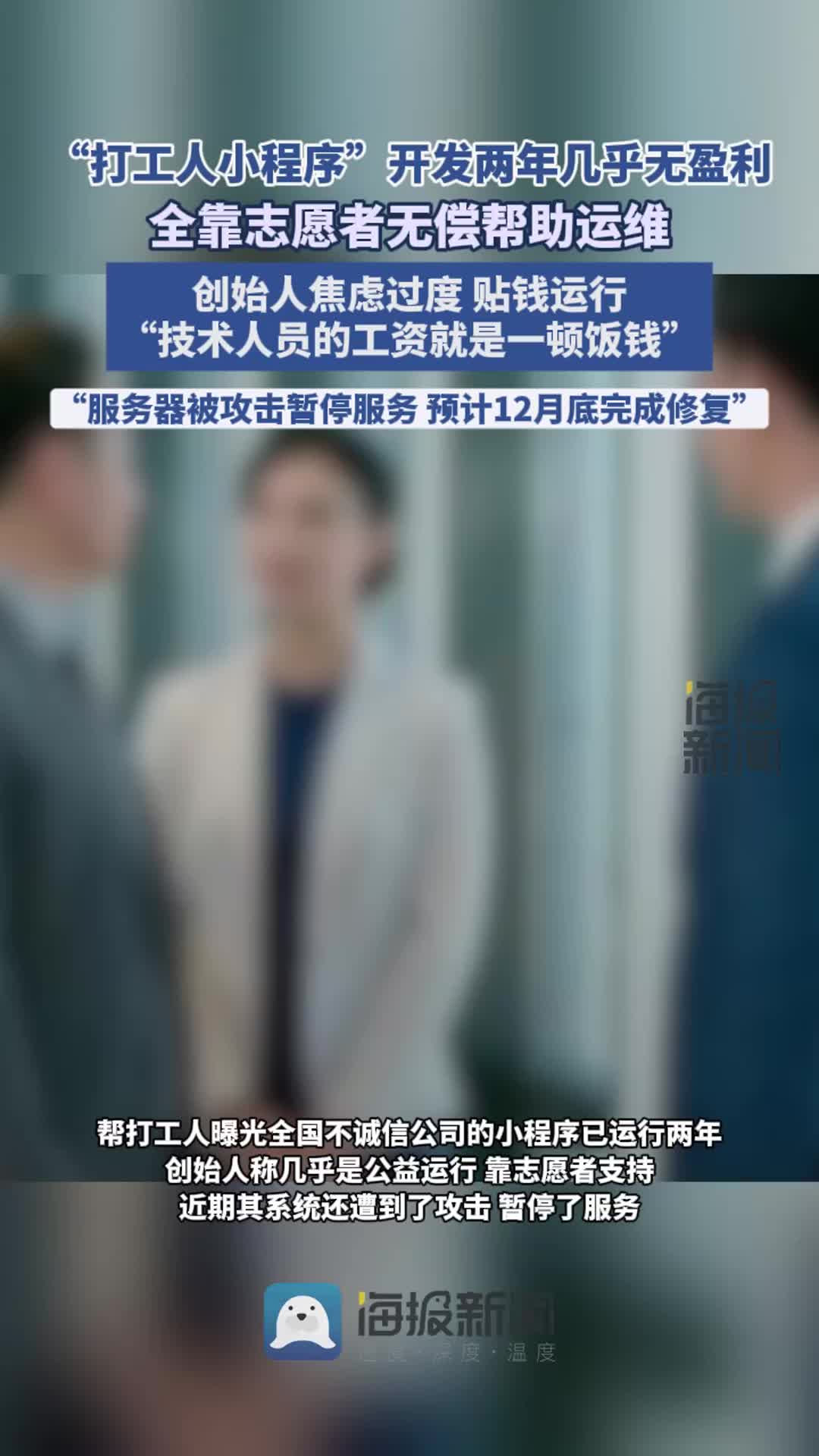 • “打工人小程序”運行兩年幾乎無盈利,全靠志愿者無償幫助運維,創始人焦慮過度 貼錢運行